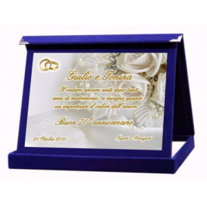 Targa classica in astuccio velluto blu 21X18 con targa personalizzata. Idea regalo Matrimonio.